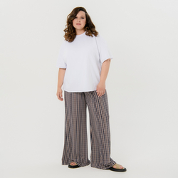 Юбка карандаш из джерси клетка бежево - коричневая, на подкладке