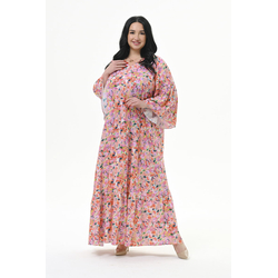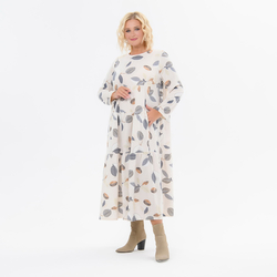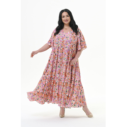 Платье каскадное из штапеля, принт "натуральный"