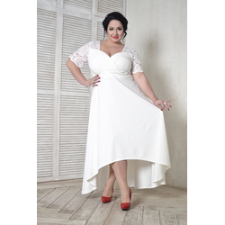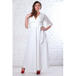 Платье вечернее-свадебное с кружевной кокеткой белого цвета