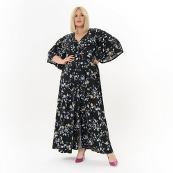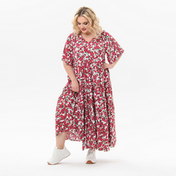 Платье каскадное, с V-вырезом, штапель, принт "розы"
