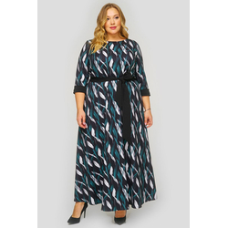 Платье длинное, креп принт "листья"