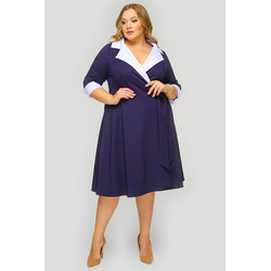 Платье с запАхом, джерси темно-синее в полоску, с белой отделкой