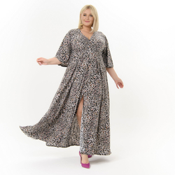 Платье длинное, с разрезом спереди, принт "леопардовый"
