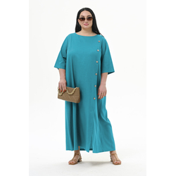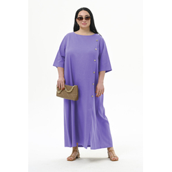Платье А-силуэта из льна, с декоративной планкой по переду, лавандовое