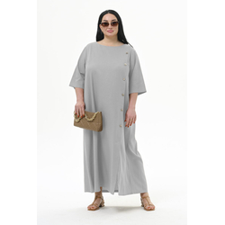 Платье А-силуэта из льна, с декоративной планкой по переду, жемчужное