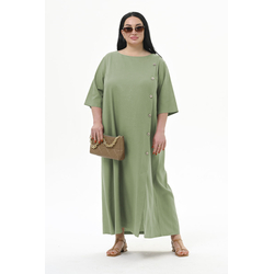 Платье А-силуэта из льна, с декоративной планкой по переду, фисташковое