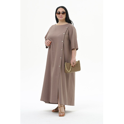 Платье А-силуэта с декоративной планкой по переду, цвет мокко