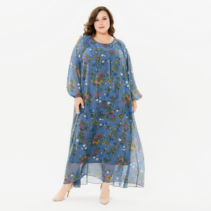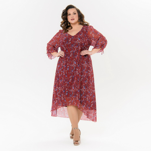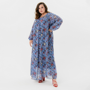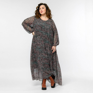 Платье длинное, ярусное, шифон травяной, принт цветочный