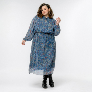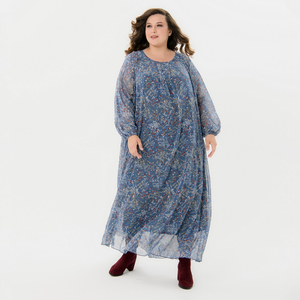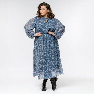Платье с мягкими защипами по горловине, шифон, принт нежный