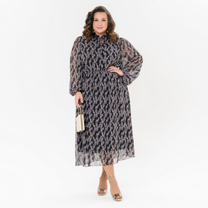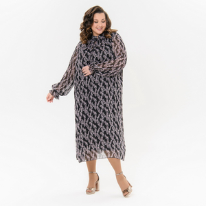 Платье из шифона с воротником "стоечка", мелкий принт на черном