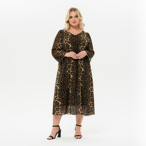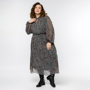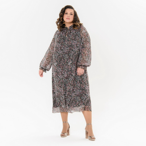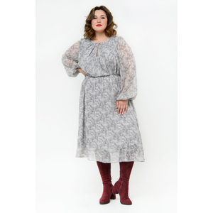 Платье из шифона с воротником "стоечка", принт "теплый серый"