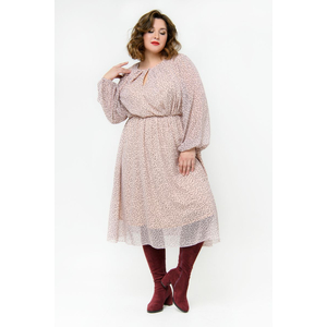 Платье с мягкими защипами по горловине, шифон пудровый в черный горошек