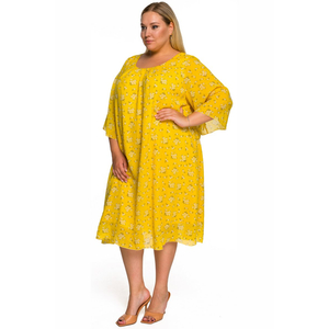Платье с мягкими защипами по горловине, шифон нежно-желтый
