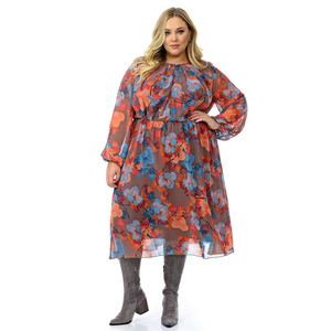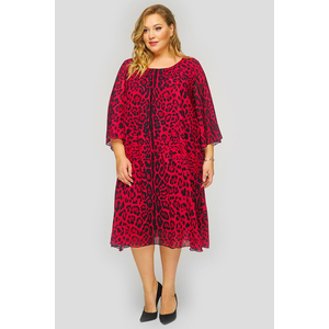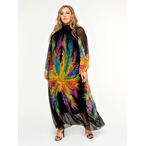 Платье с мягкими защипами по горловине, шифон принт яркий