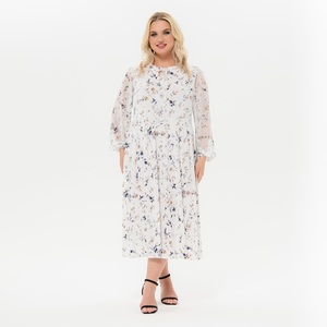 Платье комбинированное, основа "масло", рукава шифон-компаньон, молочное