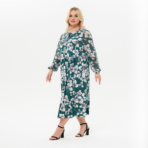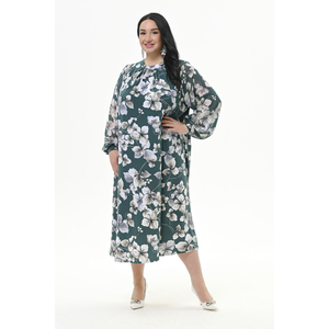Платье комбинированное, масло/шифон, изумрудное, принт цветочный