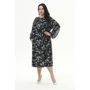 Платье комбинированное, основа "масло", рукава шифон-компаньон, черное с бирюзовыми цветами