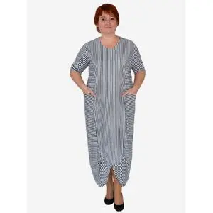 Длинное хлопковое платье с принтом в полоску размеры 50-84