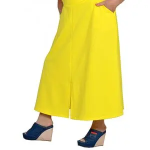 Юбка из трикотажа футер желтая с карманами с разрезом по переду размеры 50-84