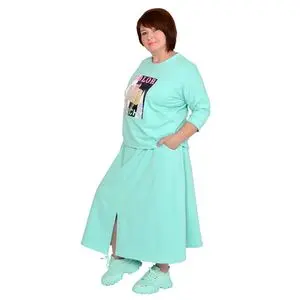 Юбка из трикотажа футер ментол с карманами с разрезом по переду размеры 50-84