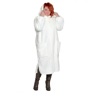 Дубленка-пальто из искусственной двухсторонней замши белый размеры 50-84