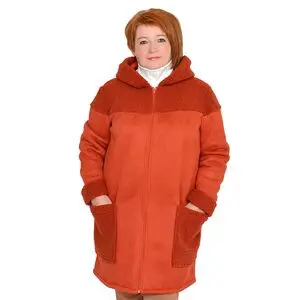 Куртка-дубленка из искусственной двухсторонней замши терракот размеры 50-84