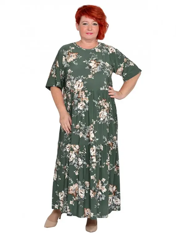 Платье в стиле бохо, расклешенное из трикотажного полотна масло