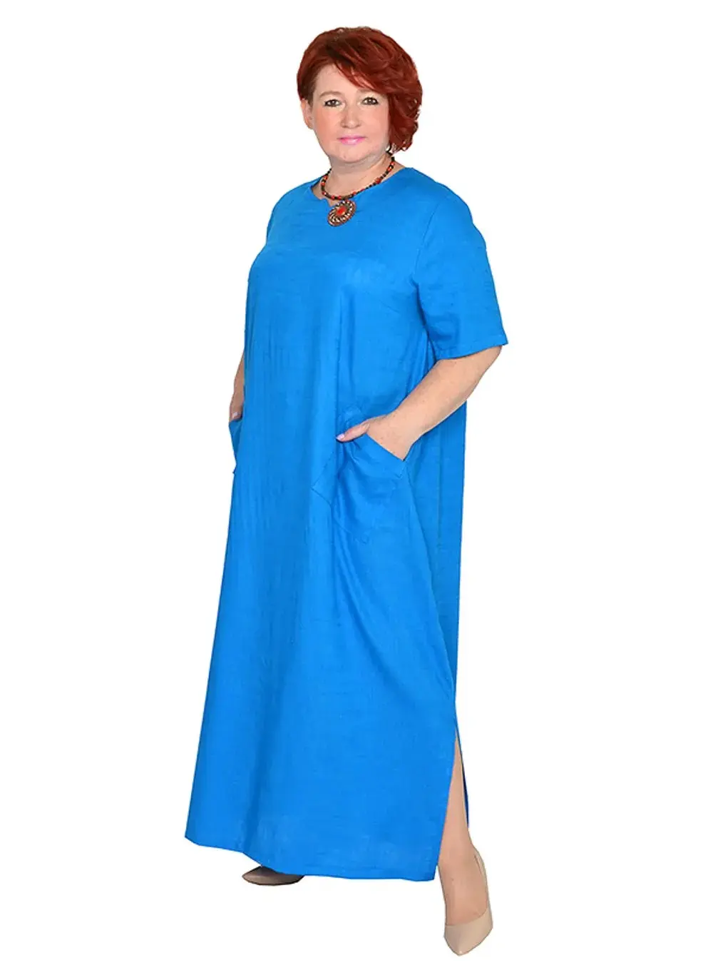 Платье силуэт трапеция с разрезами по боковому шву синие размеры 50-84