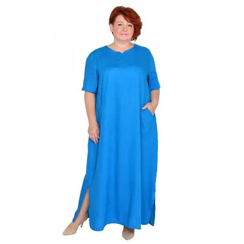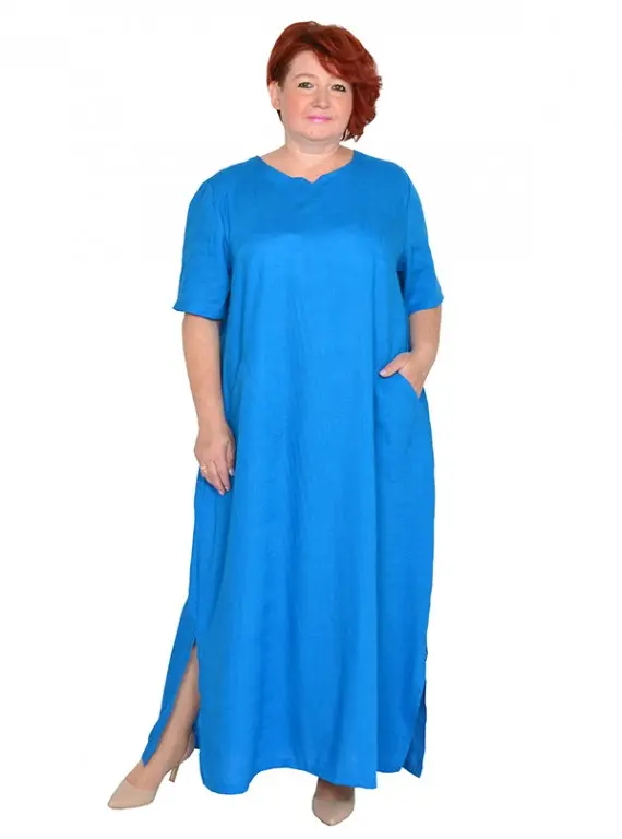 Платье силуэт трапеция с разрезами по боковому шву синие размеры 50-84 — отзывы