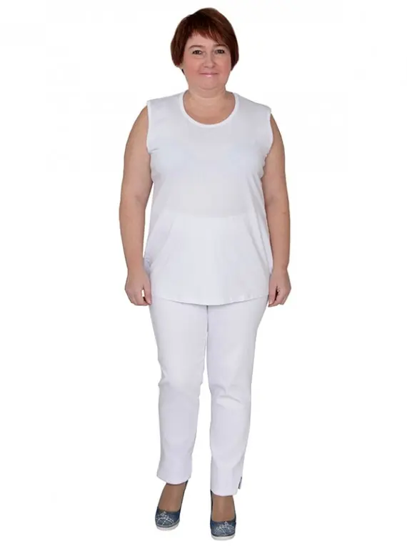 Майка из хлопкового трикотажного полотна. Прекрасно подойдет к жакетам, а также может использоваться отдельно. Длина 75 см.
