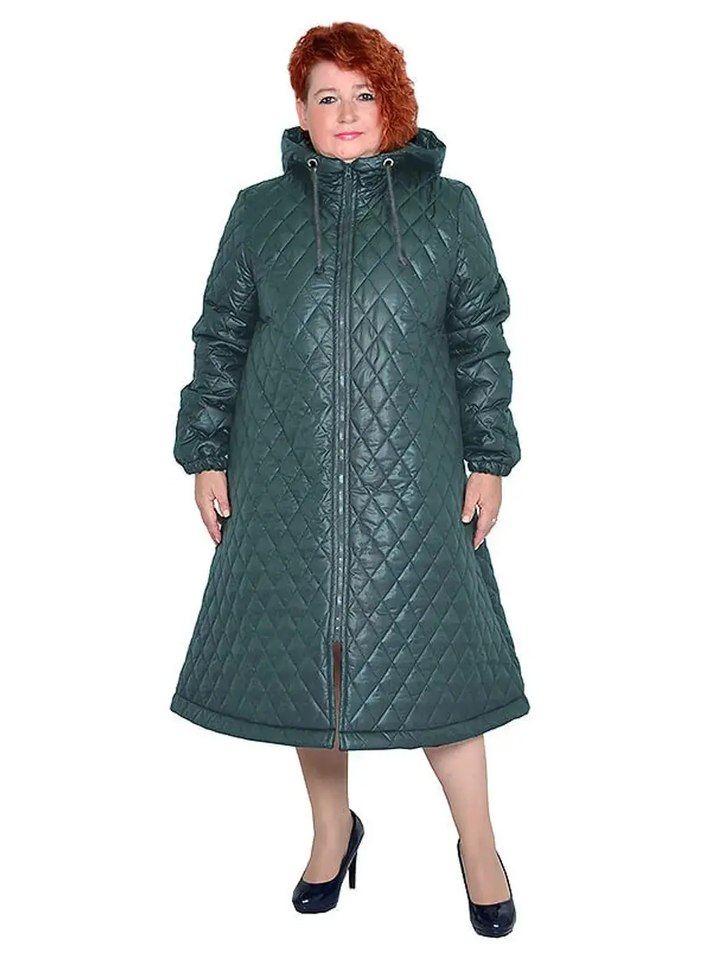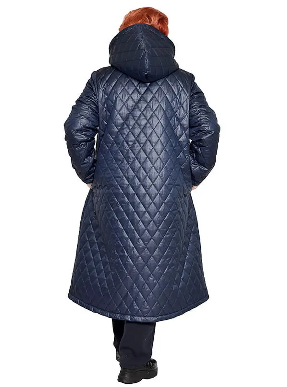 Пальто из плащевой ткани стеганое на синтепоне с хлопковой подкладкой. Длина 115-120 см.