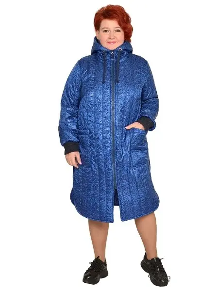 Пальто демисезонное прямое синие размеры 50-84 — отзывы
