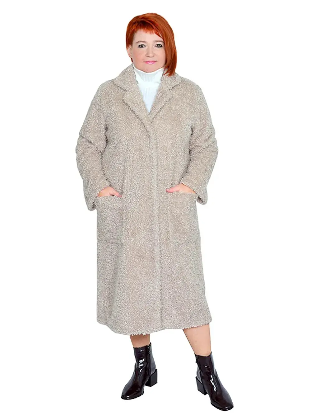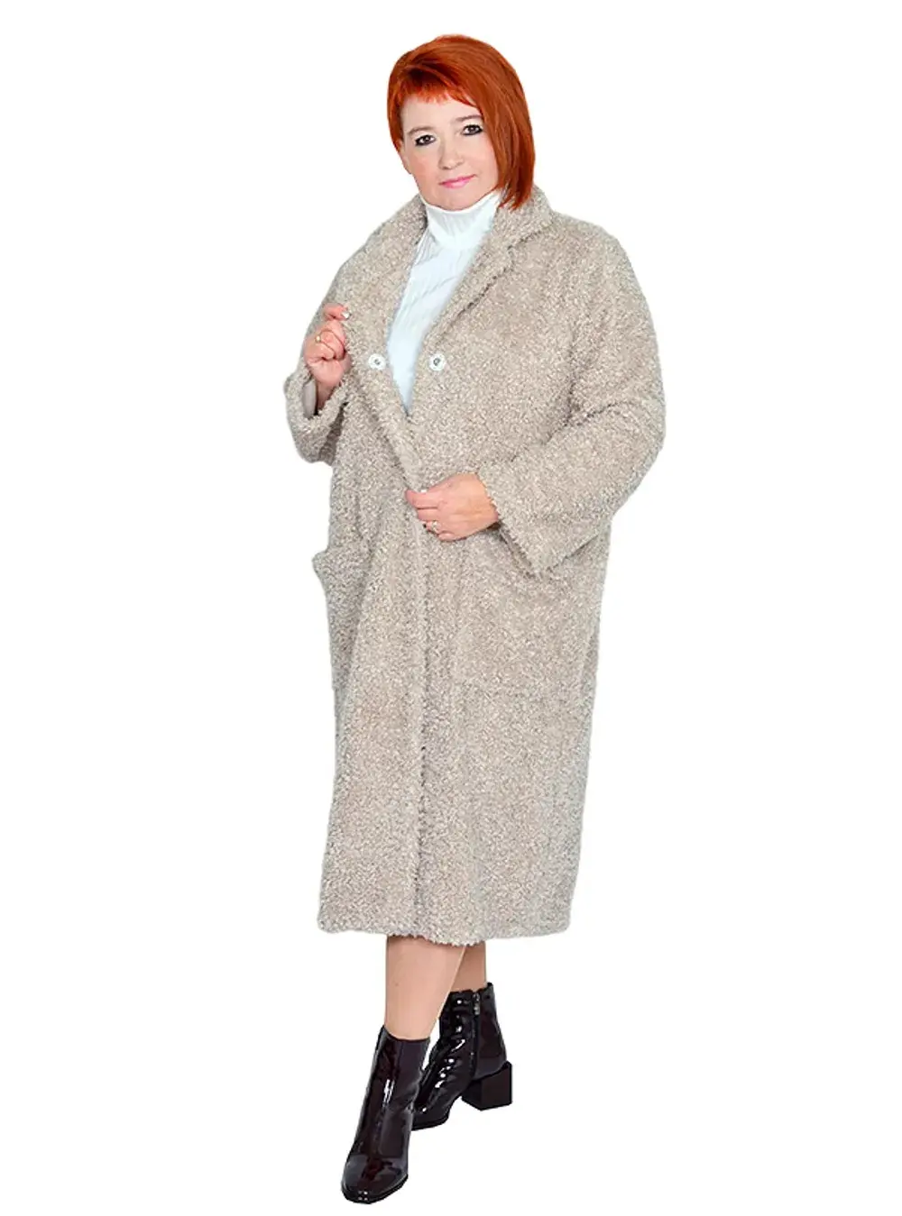 Пальто из искусственного меха чебурашка бежевый размеры 50-84