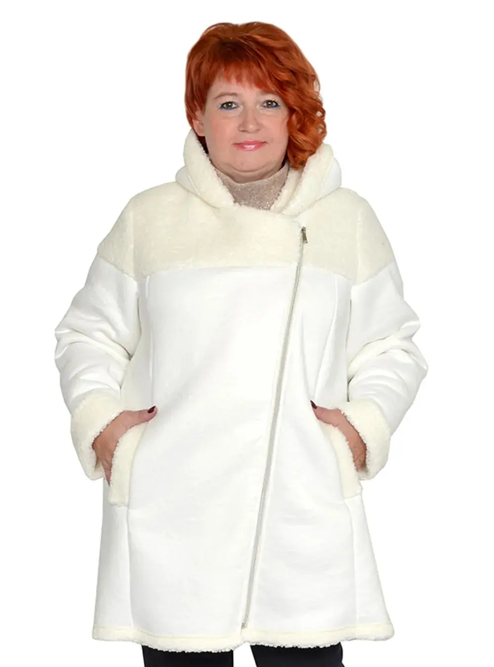 Куртка-дубленка из искусственной двухсторонней замши белая размеры 50-84