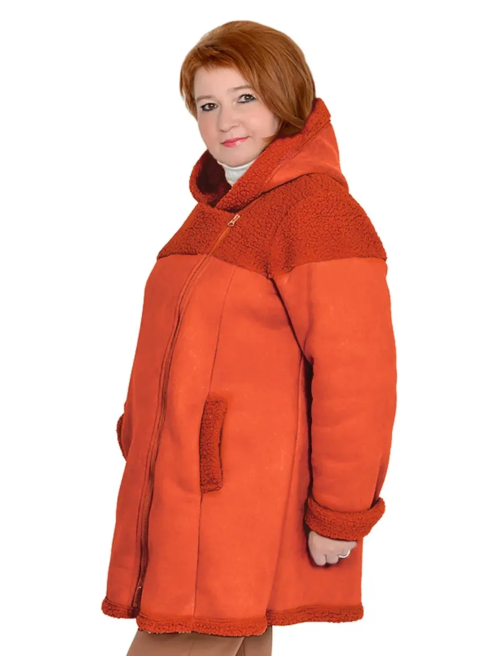 Куртка-дубленка из искусственной двухсторонней замши терракот размеры 50-84