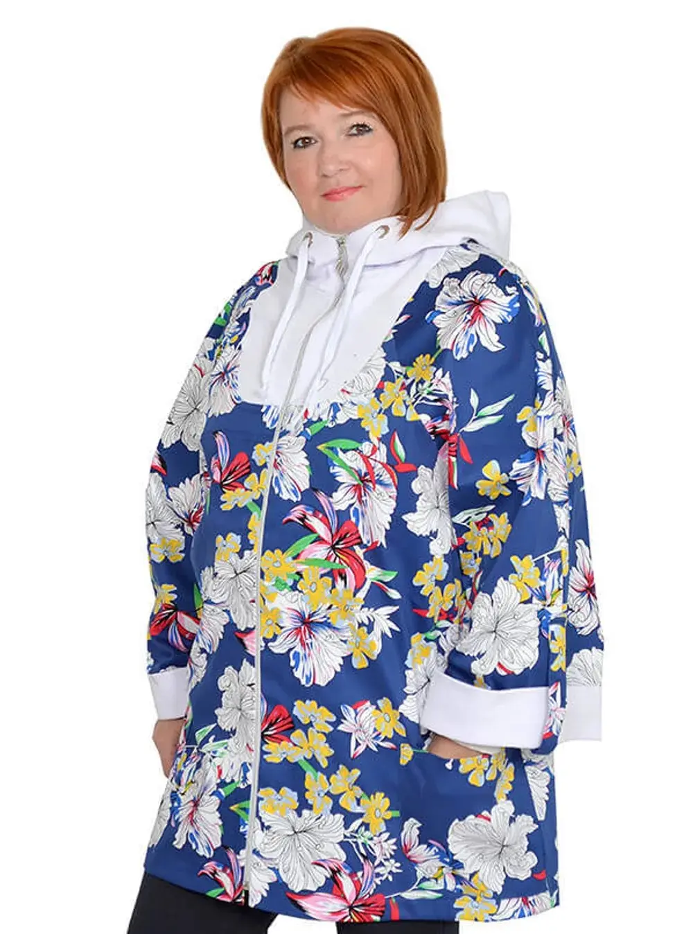 Джинсовая куртка-парка цветочный принт размеры 50-84 — отзывы
