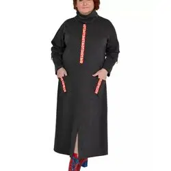Платье с отделкой декоративной тесьмой по переду, карманам и рукаву