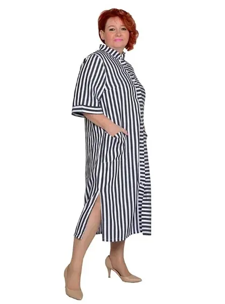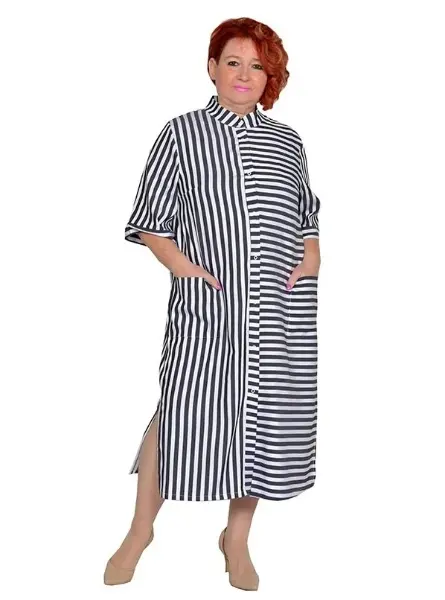 Платье-рубашка в полоску с боковыми разрезами размеры 50-84