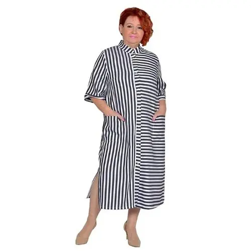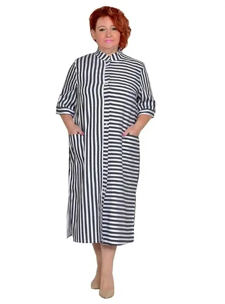 Платье-рубашка в полоску с боковыми разрезами размеры 50-84 — отзывы