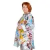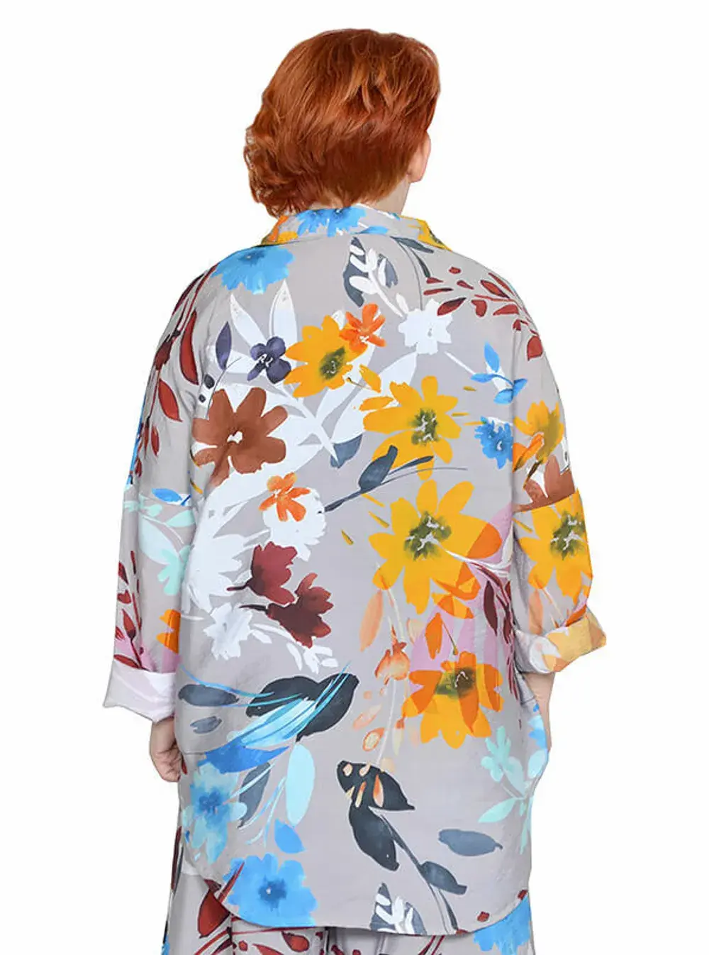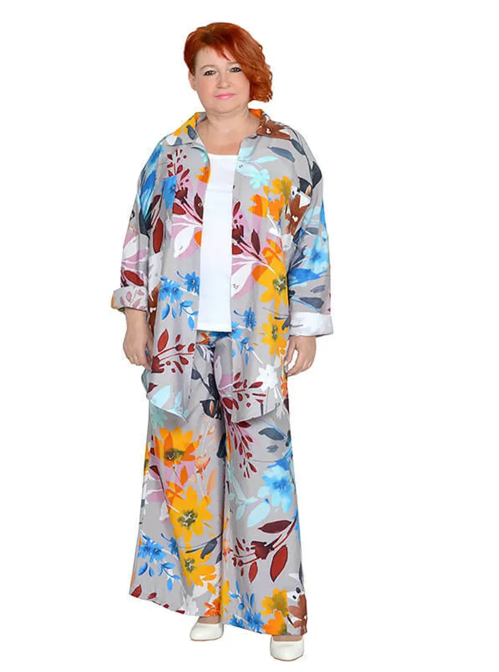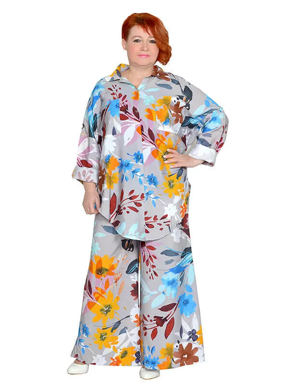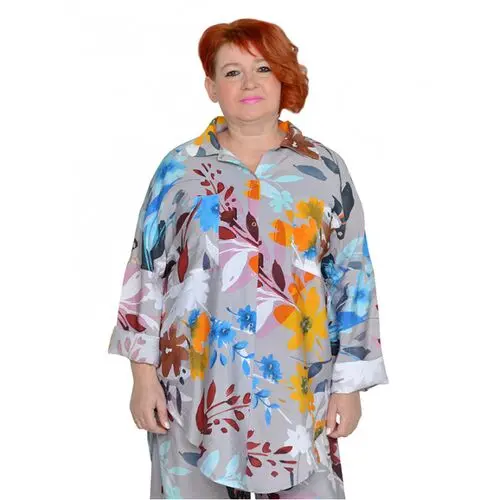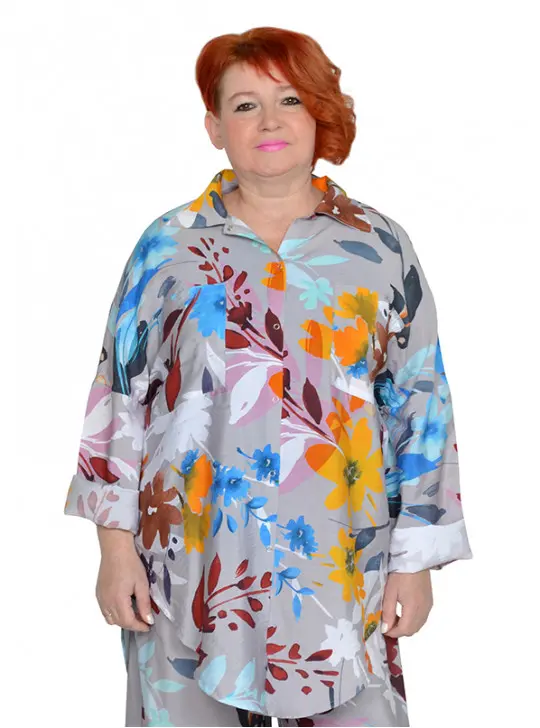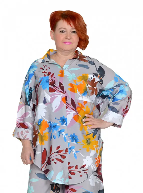 Рубашка с застежками на кнопки. Ткань не тянется. Состав вискоза 65% и 35% пэ. Ткань имеет красивый, шелковистый, жатый эффект, не мнется, очень легкая и воздушная. Можно носить как застегнутую, так и на распашку, используя майки. Рукава длинные и их можно подвернуть на нужную длину.