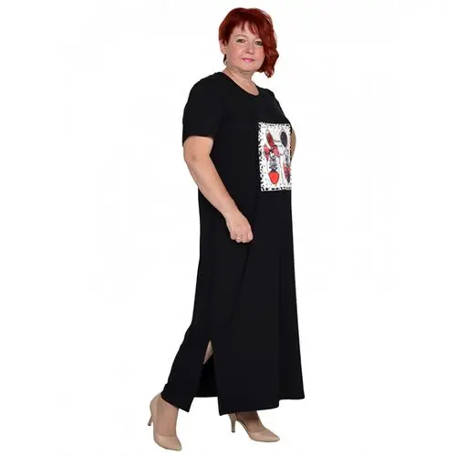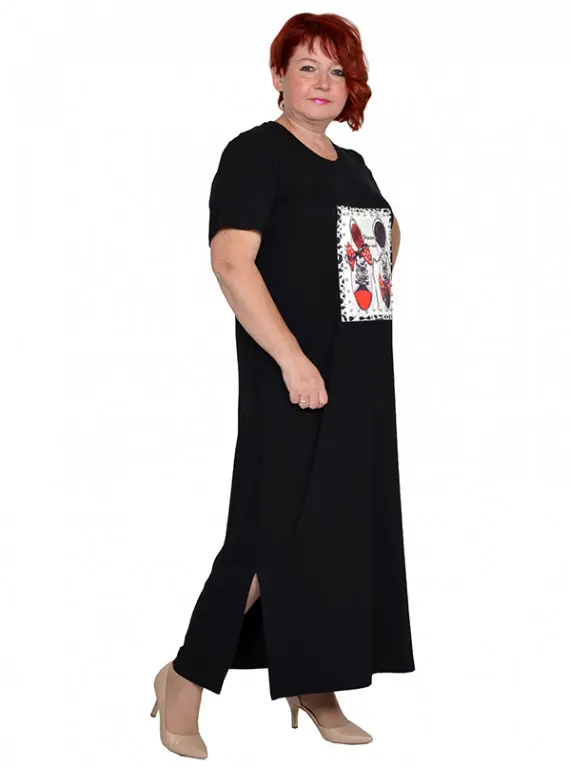 Платье с разрезами из трикотажной вискозы черное размеры 50-84