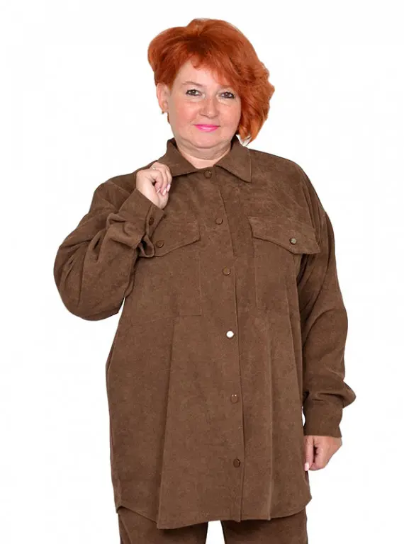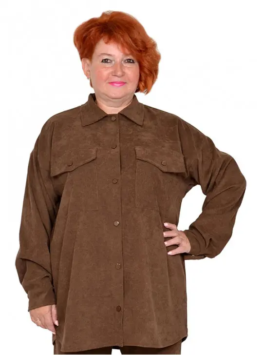 Рубашка с карманами, застежка кнопки из ткани микровельвет. Состав хлопок 25%, пэ 75%. Ткань не мнется, не тянется, приятная к телу, легкая и теплая.