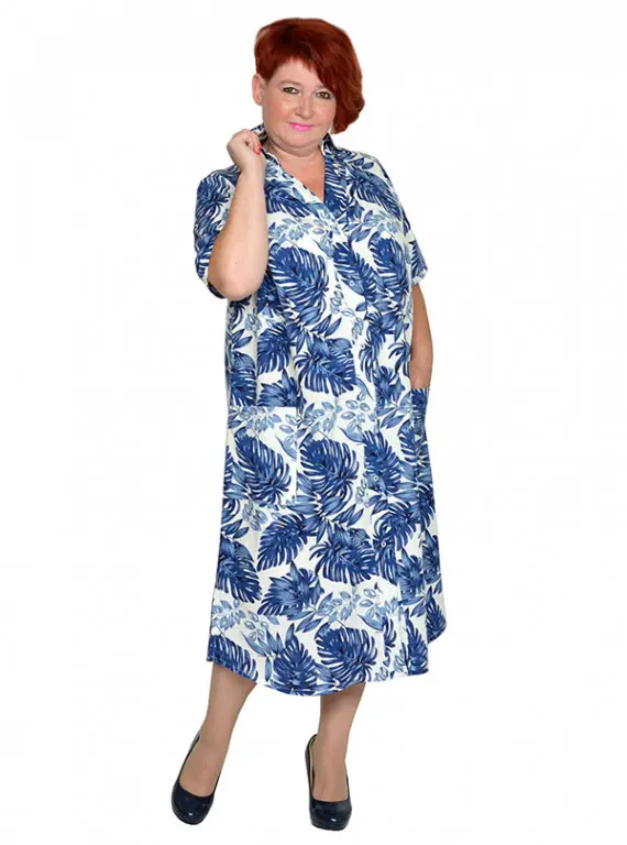 Платье-рубашка спинка на кокетке расклешенная размеры 50-84