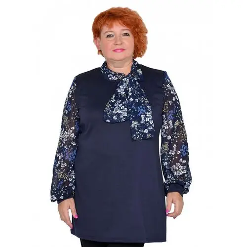 Туника из трикотажного полотна милано и отделкой из шифона. Состав 35% вискоза 65% пэ. Длина 85-95 см.