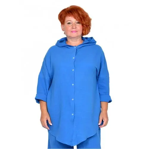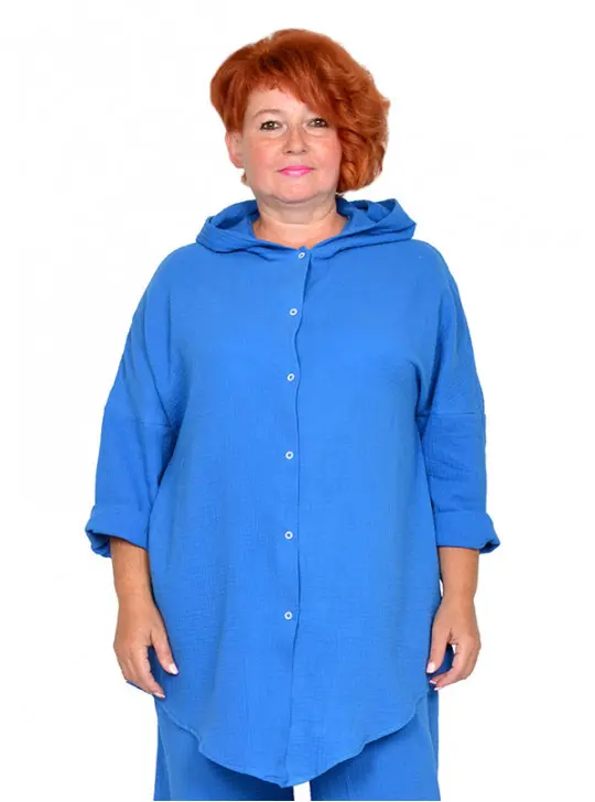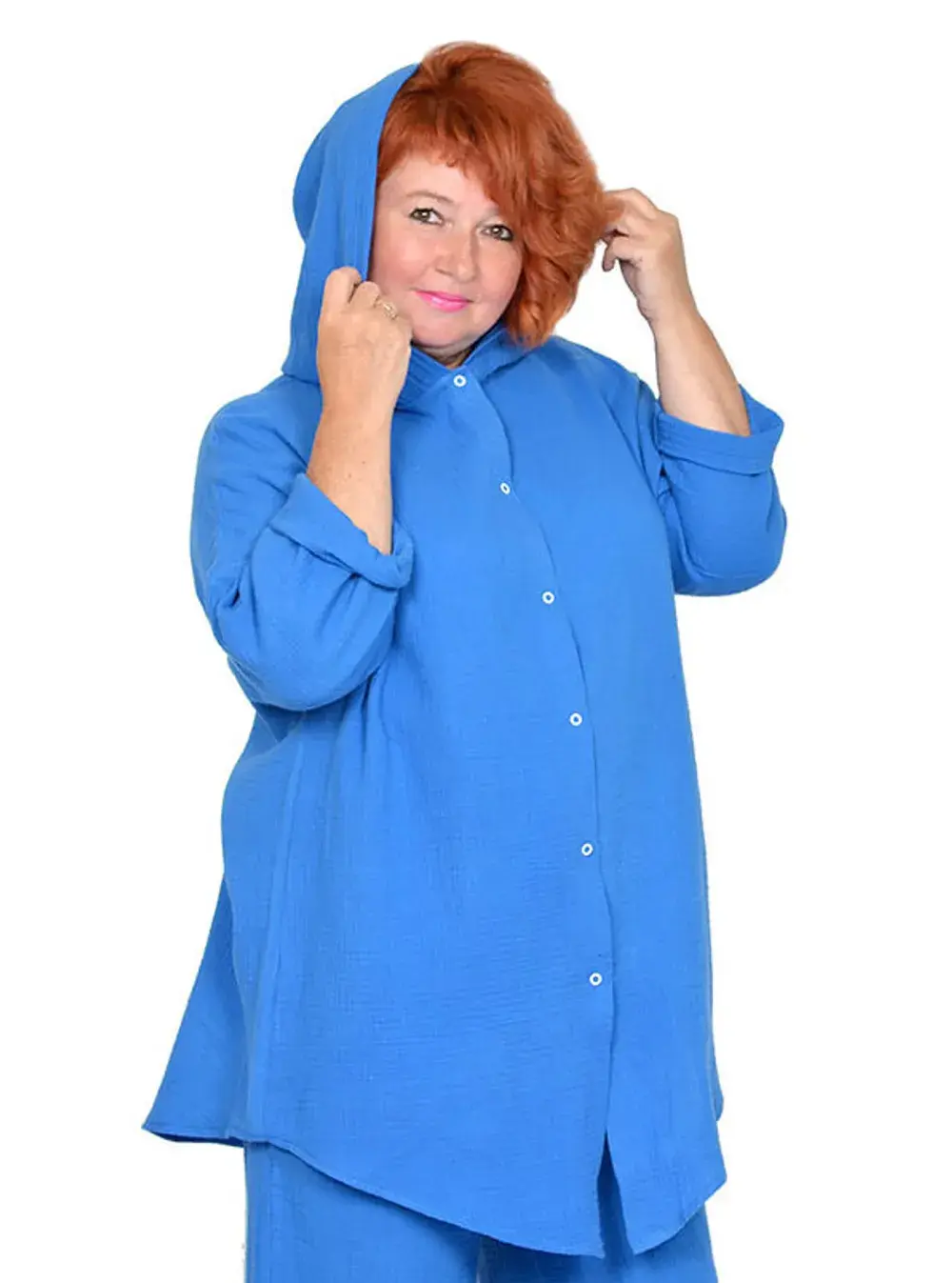 Рубашка с капюшоном из ткани муслин синяя — отзывы