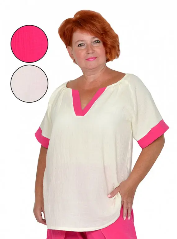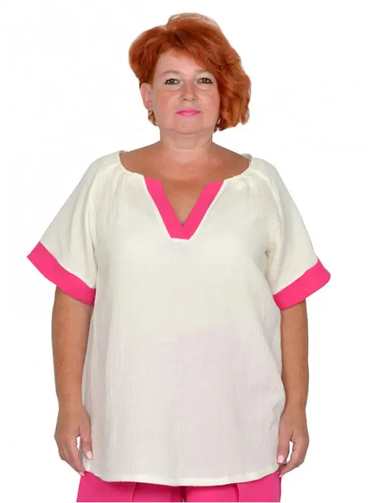 Туника с отделкой из ткани муслин. Состав хлопок 100%.