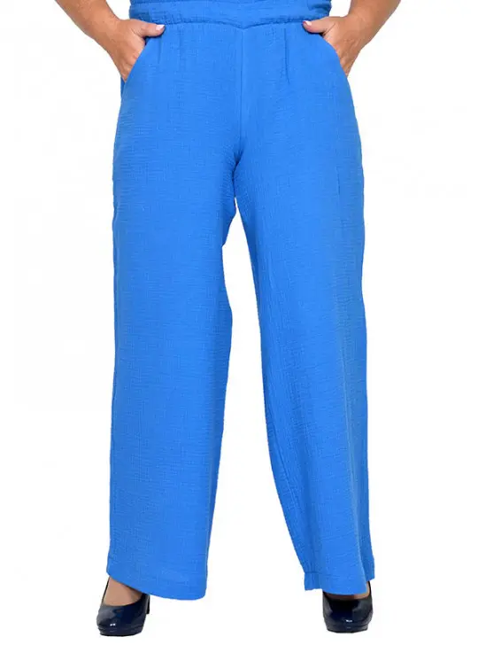 Брюки с карманами из ткани муслин. Состав хлопок 100%. Пояс на широкой резинке.