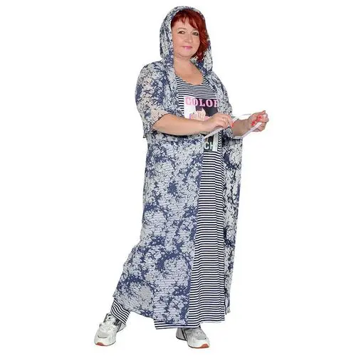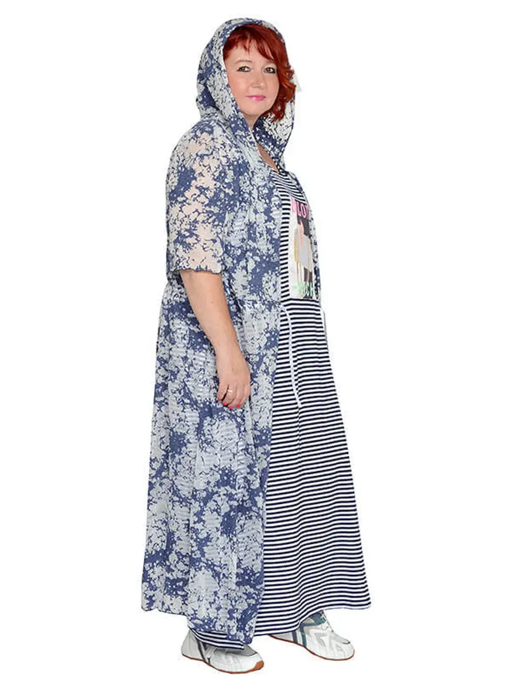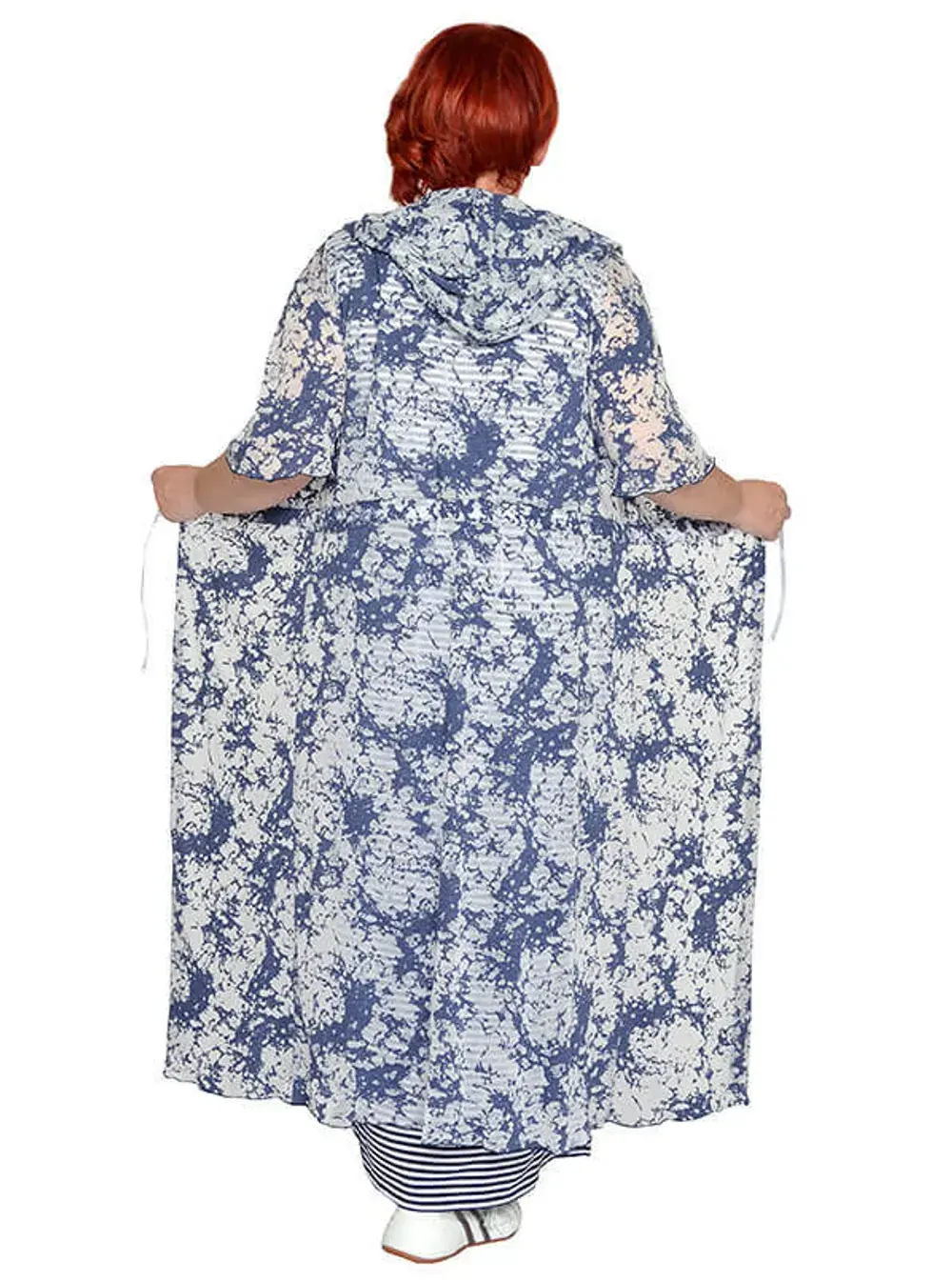 Накидка без застежки, с капюшоном из тонкого трикотажного полотна деворе. Состав 95% вискоза и 5% эластан.