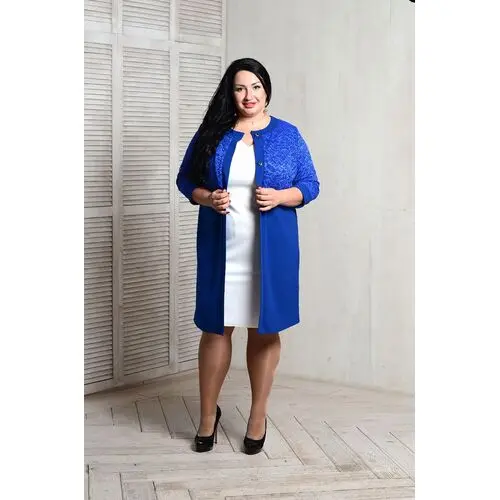 Кардиган васильковый с кружевом и прямое васильковое платье