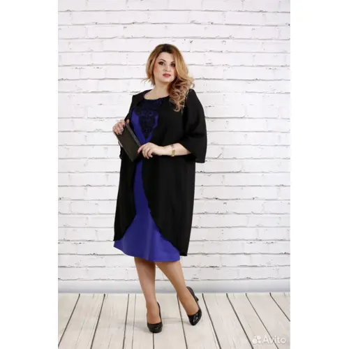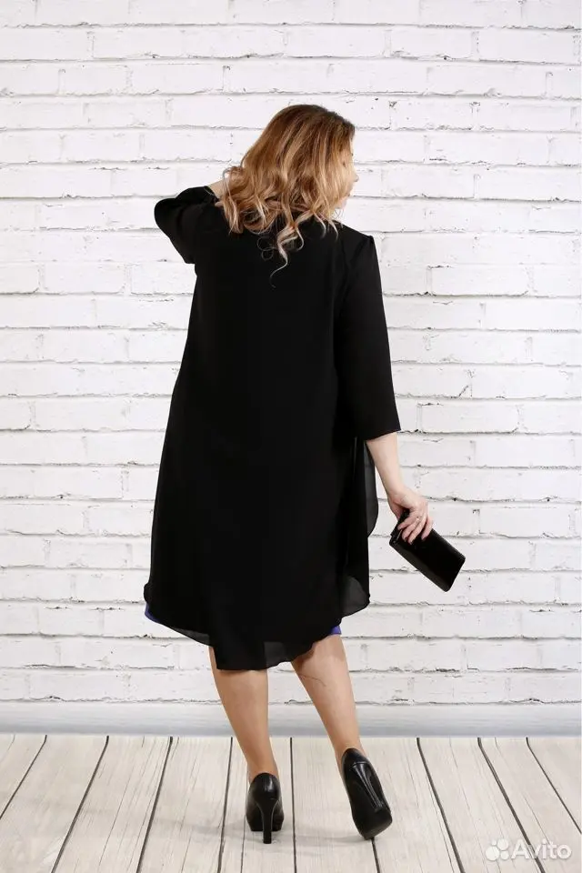 Нарядное платье большого размера из ткани французский трикотаж и пришивная накидка из шифона. Длина платья около 105 см